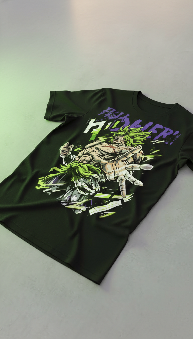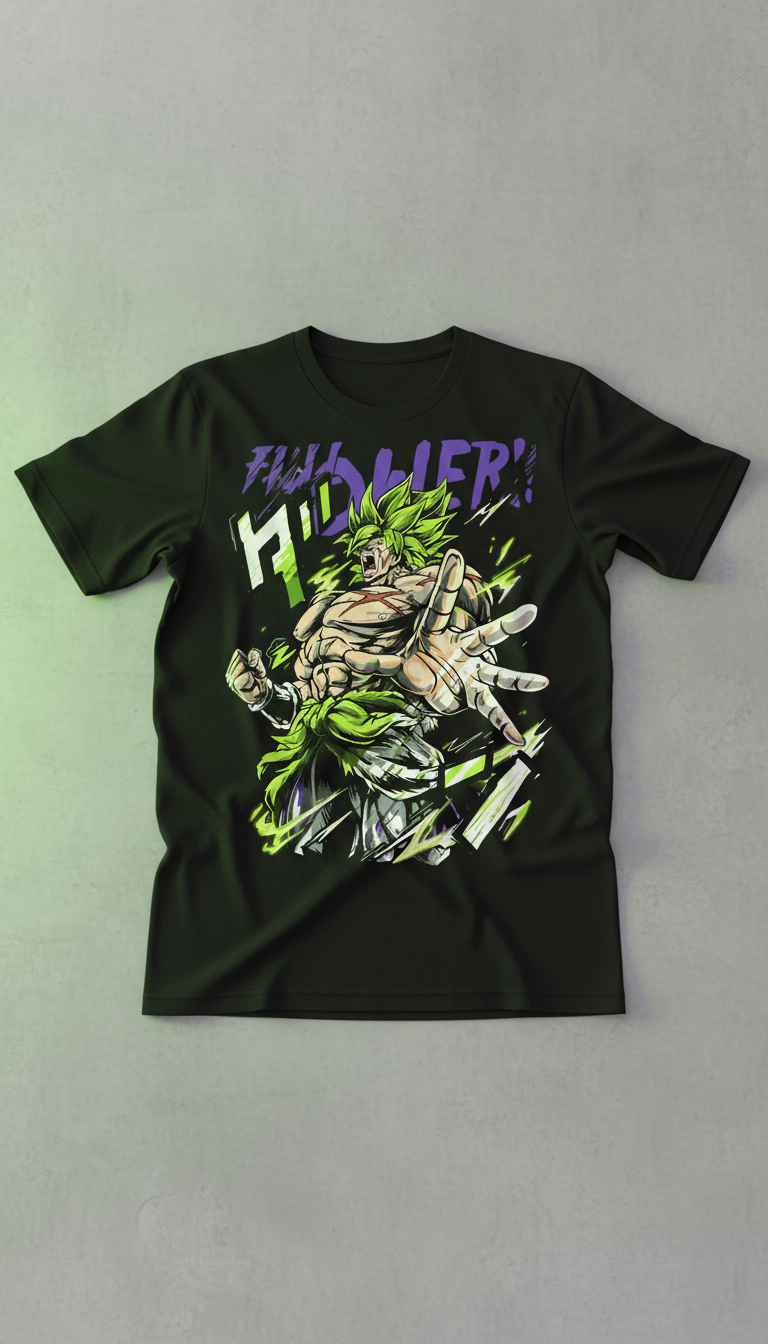 Inspirada en la fuerza descomunal del legendario Broly, esta remera captura la intensidad del anime japonés moderno con una estampa exclusiva que irradia poder puro y energía Saiyan.